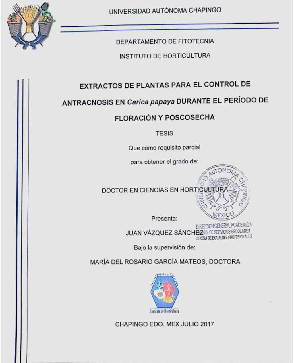 Tesis (Doctorado en Ciencias en Horticultura)