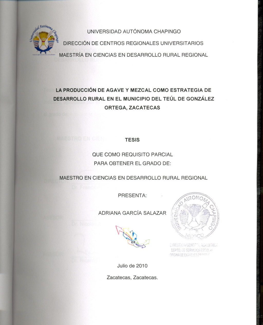 Tesis (Maestría en Ciencias en Desarrollo Rural Regional)