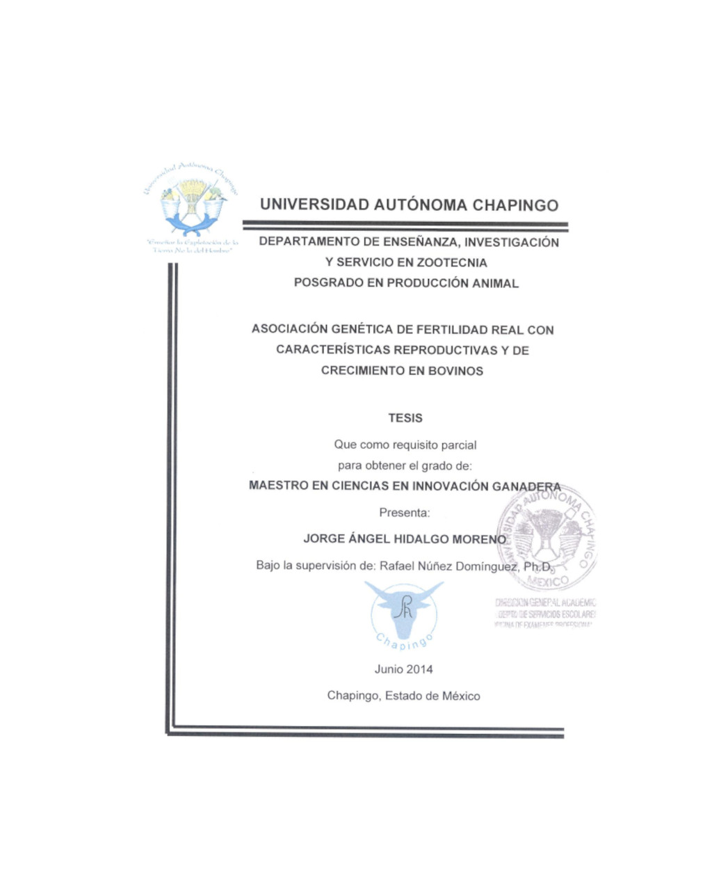 El desempeño reproductivo de la vaca y su habilidad materna inciden en la rentabilidad de los sistemas de producción vaca-becerro. El objetivo fue estimar componentes de (co)varianza y heredabilidades (ℎ!) para el índice de fertilidad real (FR), edad al primer parto (EPP), intervalo entre partos (IEP) y peso al destete (PD), así como correlaciones genéticas (�!) de FR con EPP, IEP y PD. El índice FR se calculó como el producto de PD de la cría por 365, dividido entre el IEP. Se utilizaron registros de comportamiento de bovinos Brangus Negro (BN), Salers (SA) y Suizo Europeo (SE), provenientes de ranchos localizados en diferentes estados de México, y el archivo de pedigrí incluyó 55,142 (BN), 14,065 (SA) y 33,160 (SE) animales. Análisis univariados y bivariados (FR-EPP, FR-IEP, y FR-PD), considerando el modelo animal, se llevaron a cabo para estimar componentes de (co)varianza y parámetros genéticos mediante el método de máxima verosimilitud restringida usando el programa MTDFREML. Se calculó la respuesta en FR directa y correlacionada a través de la selección para EPP, IEP o PD. Los estimadores de ℎ! directa para FR fueron 0.05, 0.09 y 0.06, para EPP 0.05, 0.01 y 0.10, para IEP 0.04, 0.12 y 0.04, y para PD 0.18, 0.23 y 0.21 en BN, SA y SE, respectivamente. Los estimadores de �! en BN, SA y SE fueron respectivamente -1.00, -0.76 y -1.00 para FR-EPP, -0.84, -0.93 y -0.90 para FR-IEP, y 0.17, 0.17 y 0.15 para FR-PD. Para las tres razas, la selección para PD resultó en cambios correlacionados en FR mayores que cuando se utiliza la selección directa para FR (0.23 vs 0.12, 0.26 vs 0.13, y 0.23 vs 0.13 kg vaca-1 año-1 , para BN, SA, y SE, respectivamente). La estimación de ℎ! mejoró en magnitud y precisión con los análisis bivariados. Todas las �! de FR con las otras tres características fueron favorables. La selección para PD y posteriormente para EPP, puede mejorar genéticamente la productividad de las vacas.