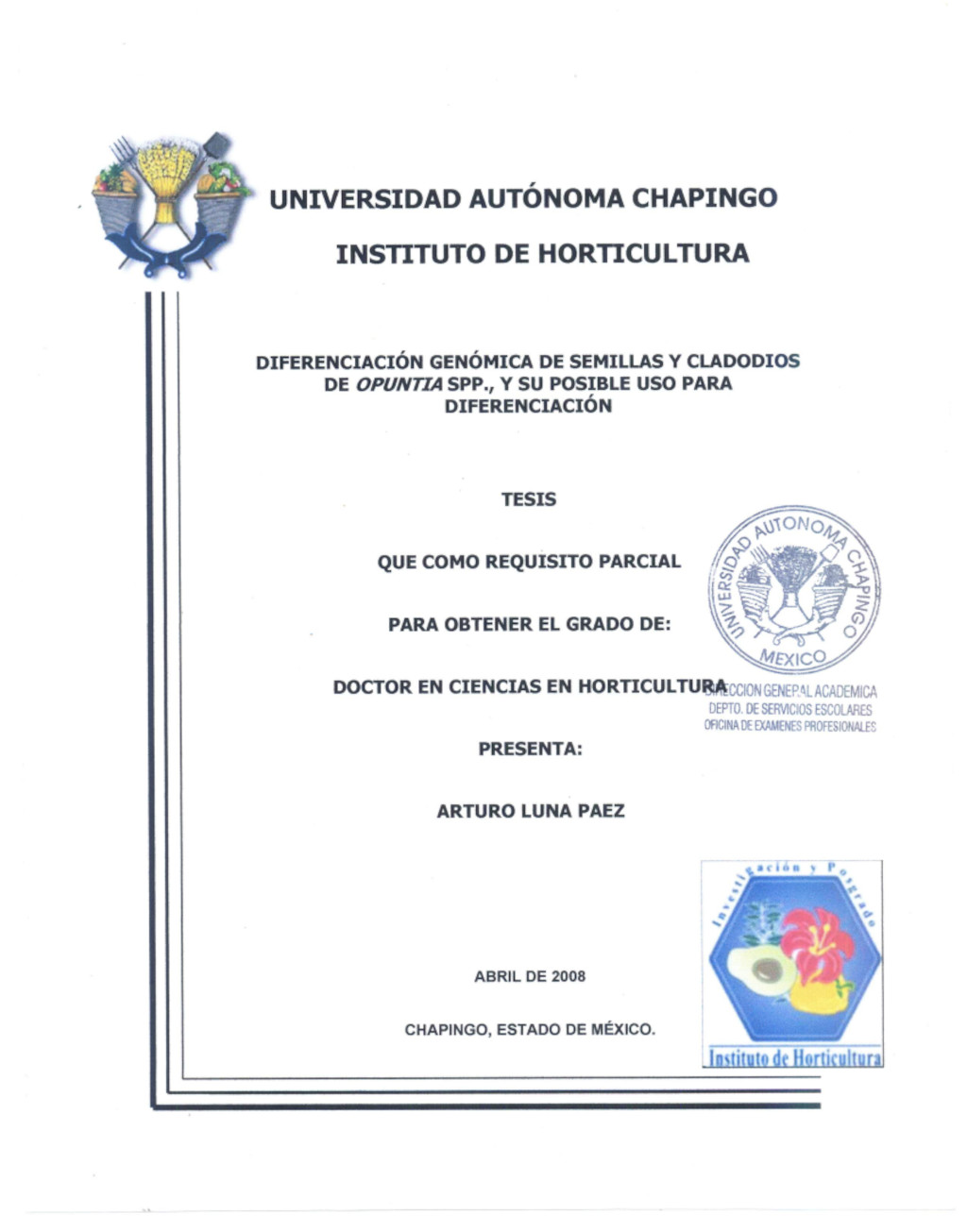 Tesis (Doctorado en Ciencias en Horticultura)