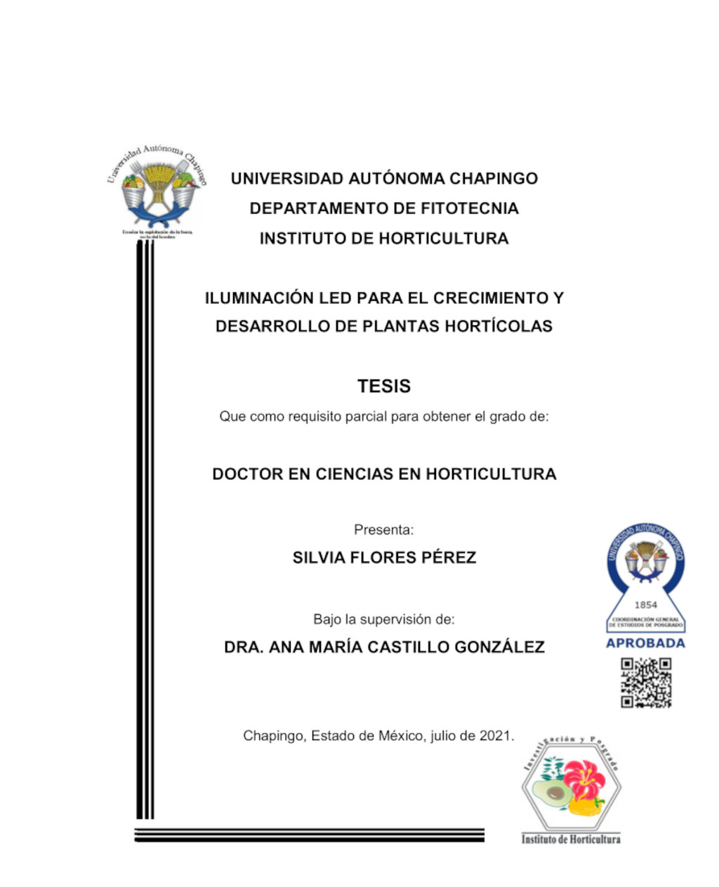Tesis (Doctorado en Ciencias en Horticultura)
