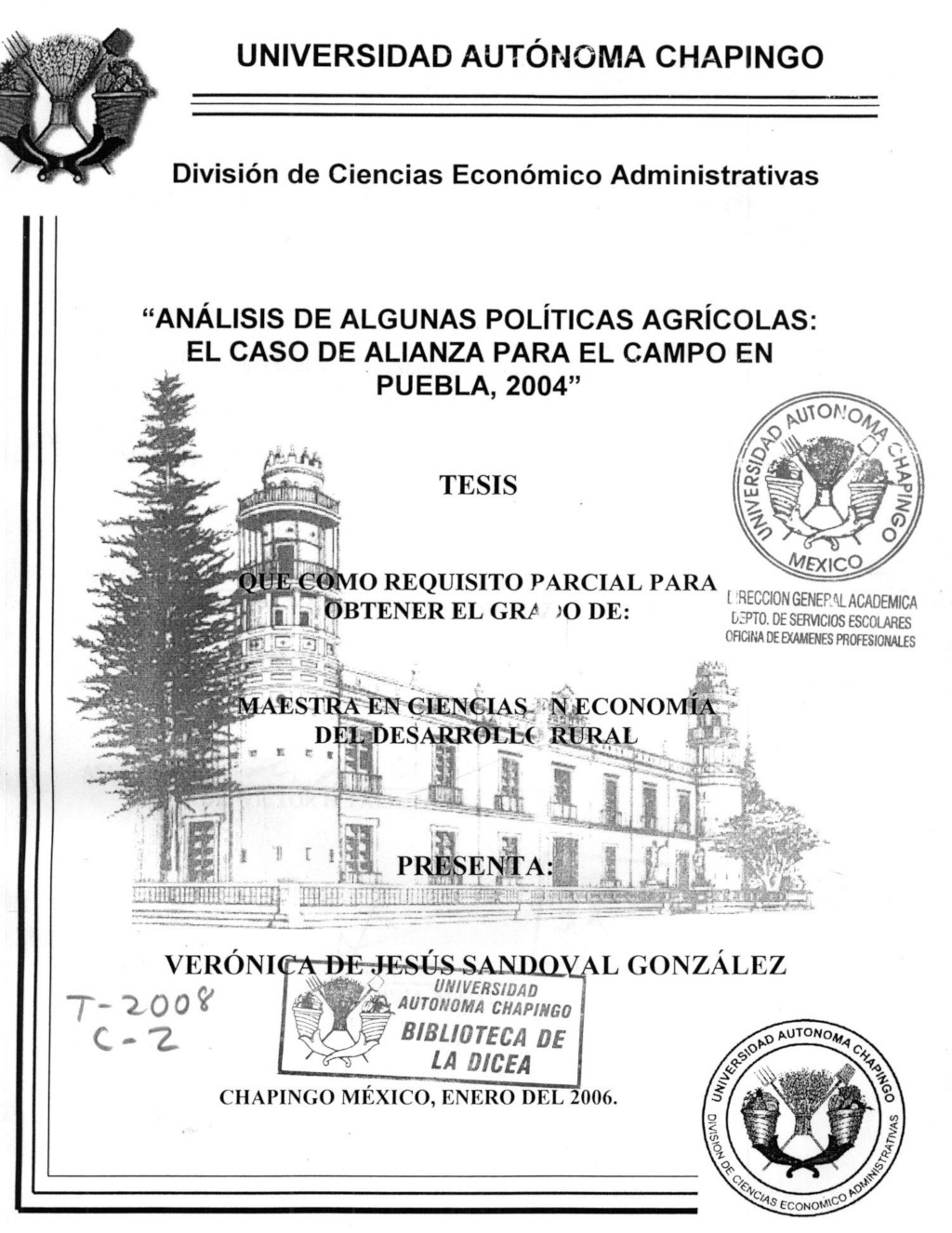 Análisis de algunas políticas agrícolas: el caso de alianza para el campo en Puebla, 2004