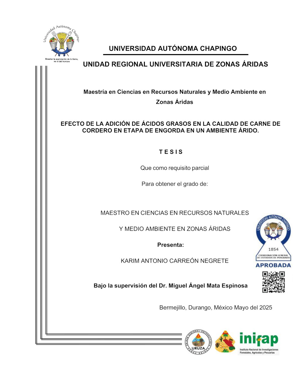 Efecto de la adición de ácidos grasos en la calidad de carne de cordero en etapa de engorda en un ambiente árido