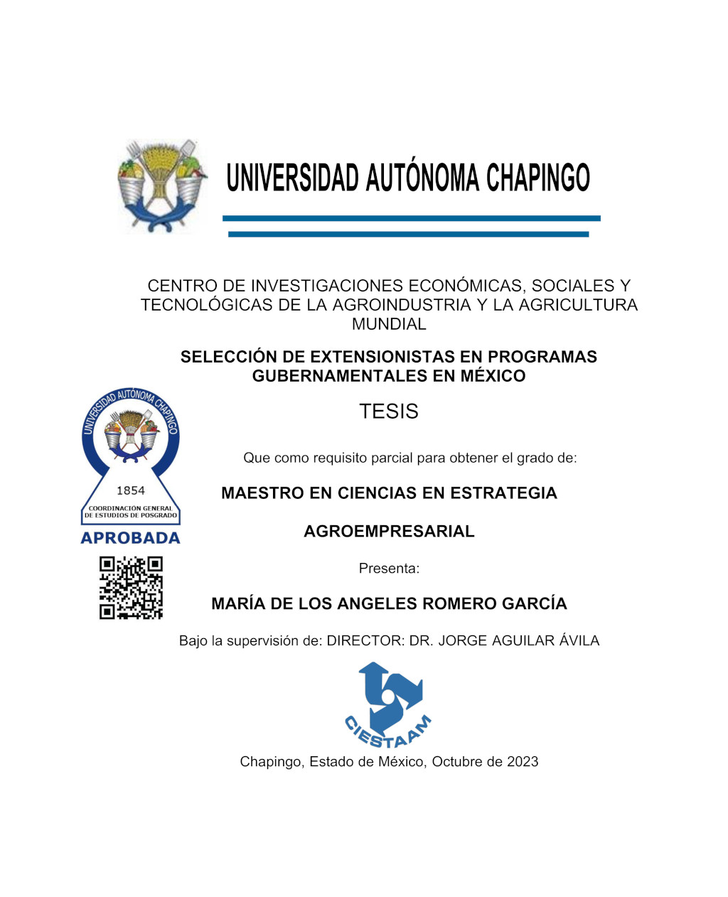 Tesis (Maestría en Ciencias en Estrategia Agroempresarial)