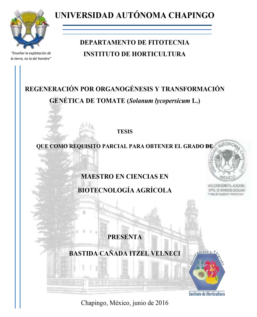 Regeneración por organogénesis y transformación genética de tomate (Solanum lycopersicum L.)