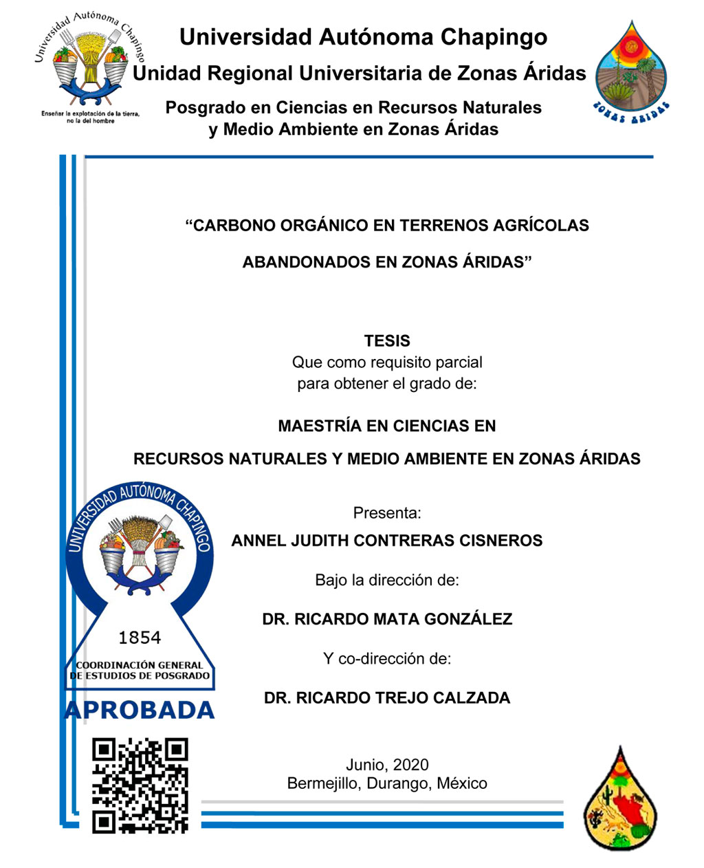 Tesis (Maestría en Ciencias en Recursos Naturales y Medio Ambiente en Zonas Áridas)