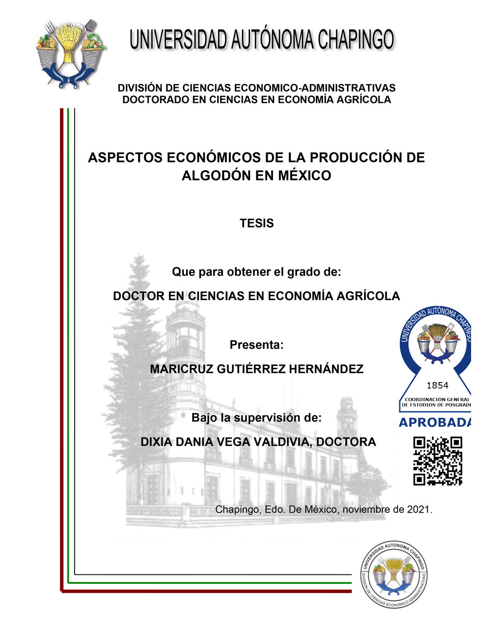 Tesis (Doctorado en Ciencias en Economía Agrícola)