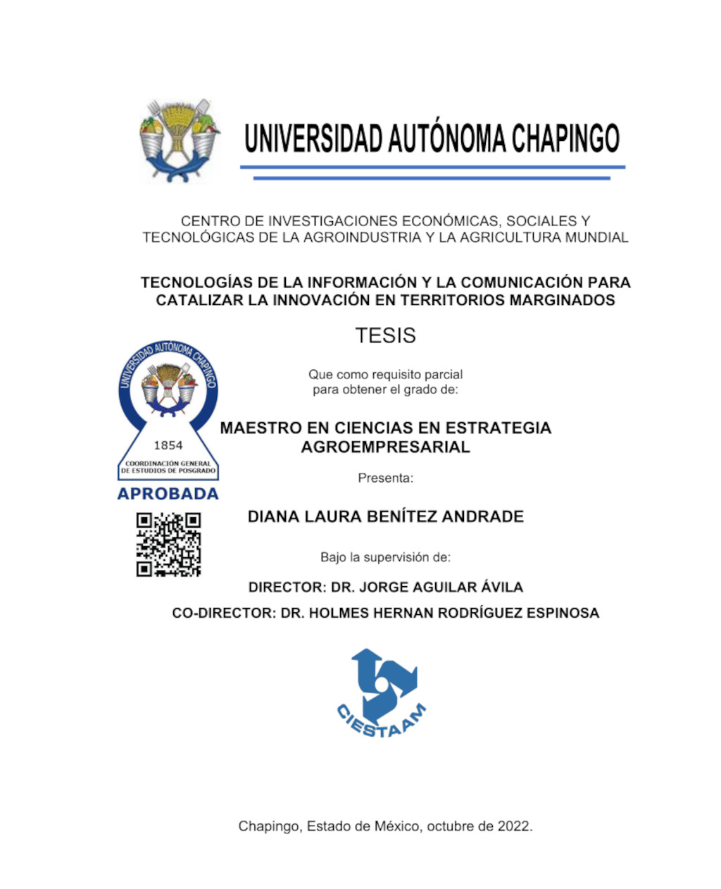Tesis (Maestría en Ciencias en Estrategia Agroempresarial)