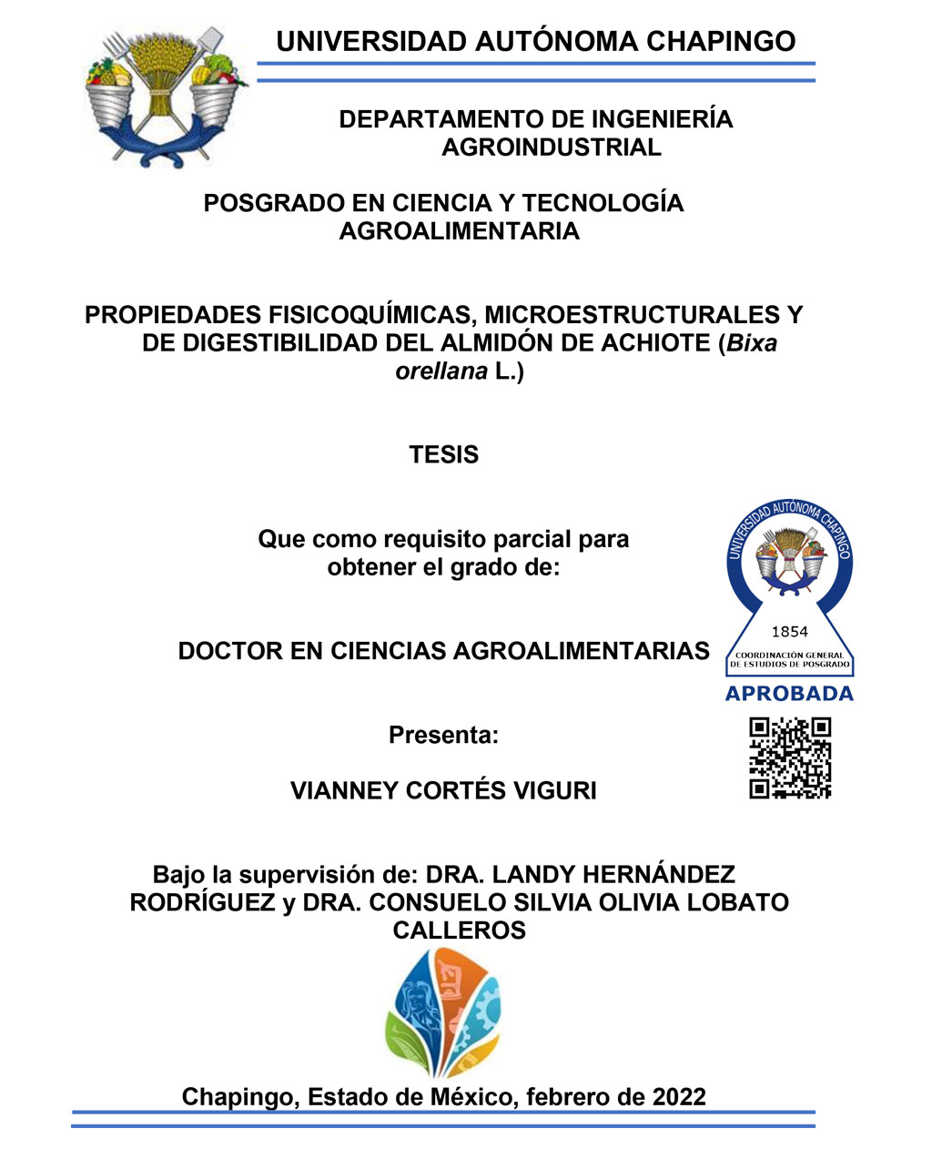 dc.title | Propiedades fisicoquímicas, microestructurales y de digestibilidad del almidón de achiote (Bixa orellana L.) | es_MX |