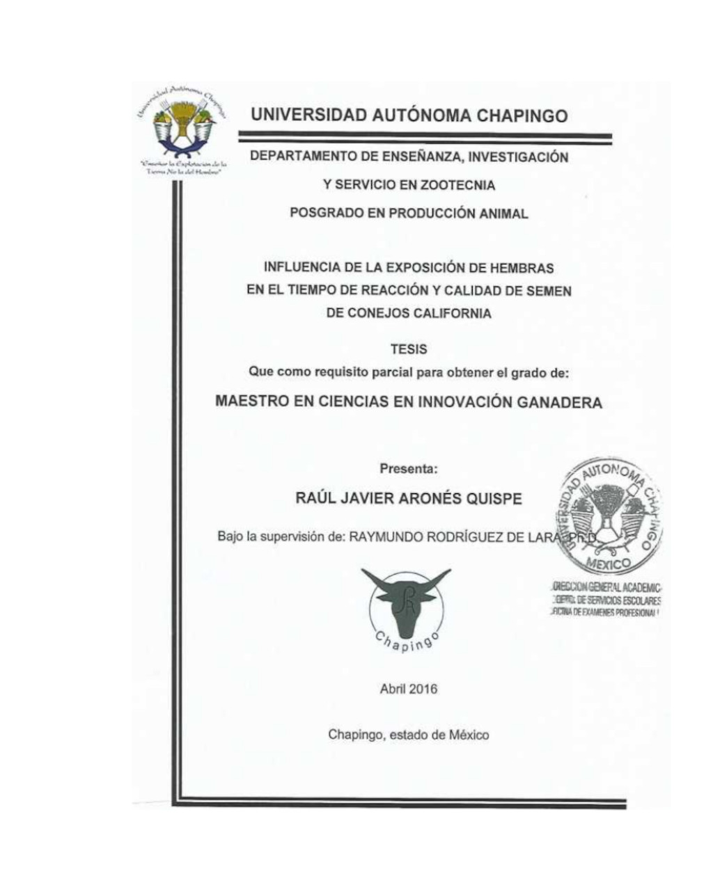 Influencia de la exposición de hembras en el tiempo de reacción y calidad de semen de conejos California