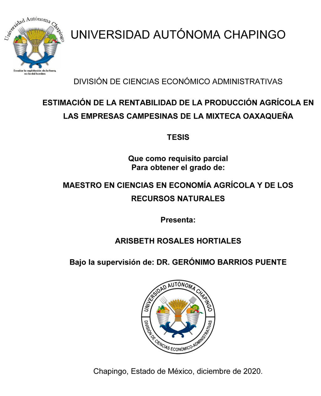 Estimación de la rentabilidad de la producción agrícola en las empresas campesinas de la mixteca oaxaqueña