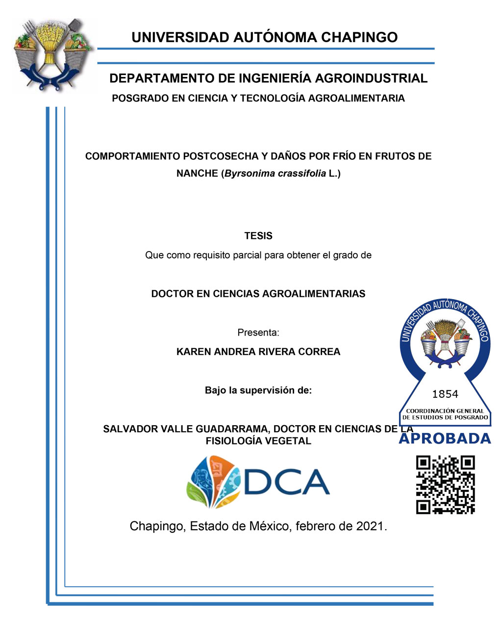 Tesis (Doctorado en Ciencias Agroalimentarias)