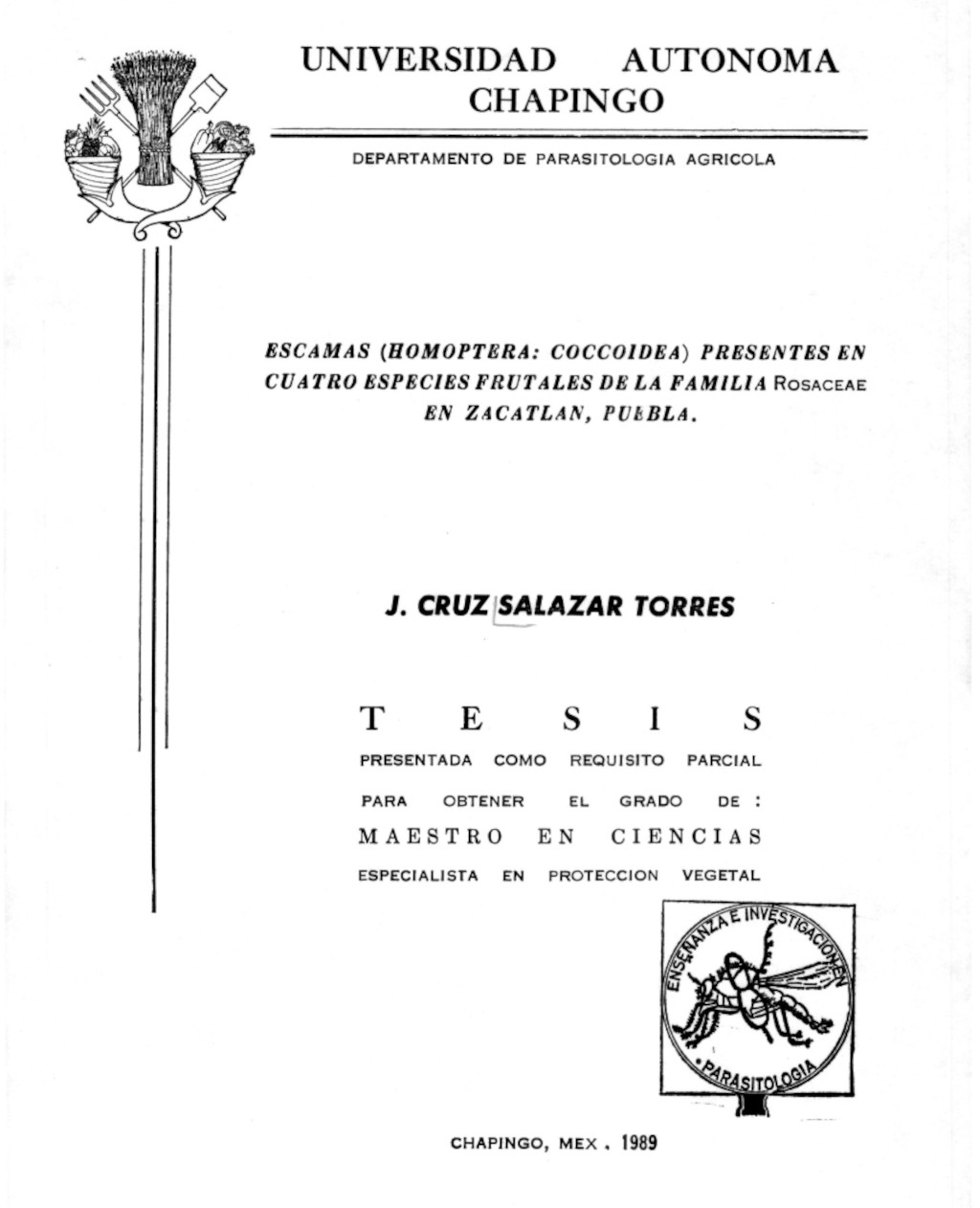 La presente investigación, se realizó en el municipio de Zacatlán, Puebla, de enero a septiembre de 1988. Los objetivos planteados fueron: identificar las especies de insectos escama presentes en los cuatro frutales más importantes en dicho lugar; describir, con base en la literatura, las especies identificadas; y determinar la presencia de parasitoides en las escamas, así como la de otros agentes naturales de control. De las 38 muestras obtenidas, la mayor parte del material biológico se colocó en frascos viales con alcohol 70% para su preservación; posteriormente, parte de ese material se extrajo para procesarse de acuerdo con el metodo de montaje permanente en bálsamo de Canadá para cocoídeos. Se identificó un total de ocho especies de escamas: Pseudococcus longispinus (Comstock) y P. maritimus (Ehrhom) (Familia:Pseudococcidae); Coccus hesperidium Linnaeus y Lecanium persicae (Fabricius) (Familia: Coccidae); Aspidiotus nerii (Bouché), Diaspidiotus ancylus (Putnam), Hemiberlesia rapax (Comstock) y Quadraspidiotus perniciosus (Comstock) (Familia: Diaspididae) De las especies anteriores, Q. perniciosus fue la más abundante y problemática, ya que ataca prácticamente todas las partes de los árboles en sus diferentes etapas fenológicas, y llega a secarlos totalmente cuando estos son jóvenes o recién establecidos.