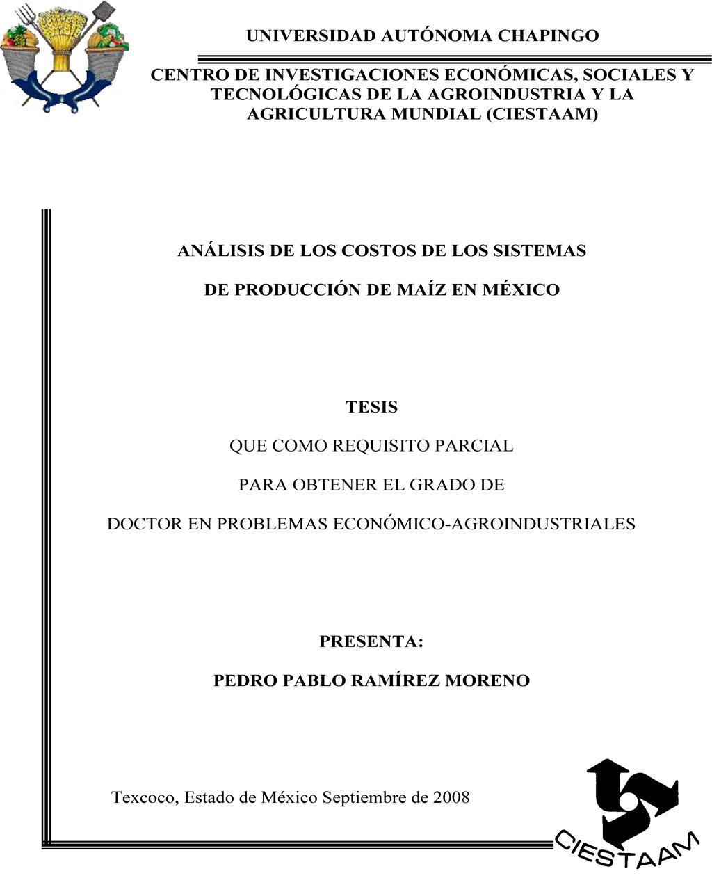 Tesis (Doctorado en Problemas Económico Agroindustriales)