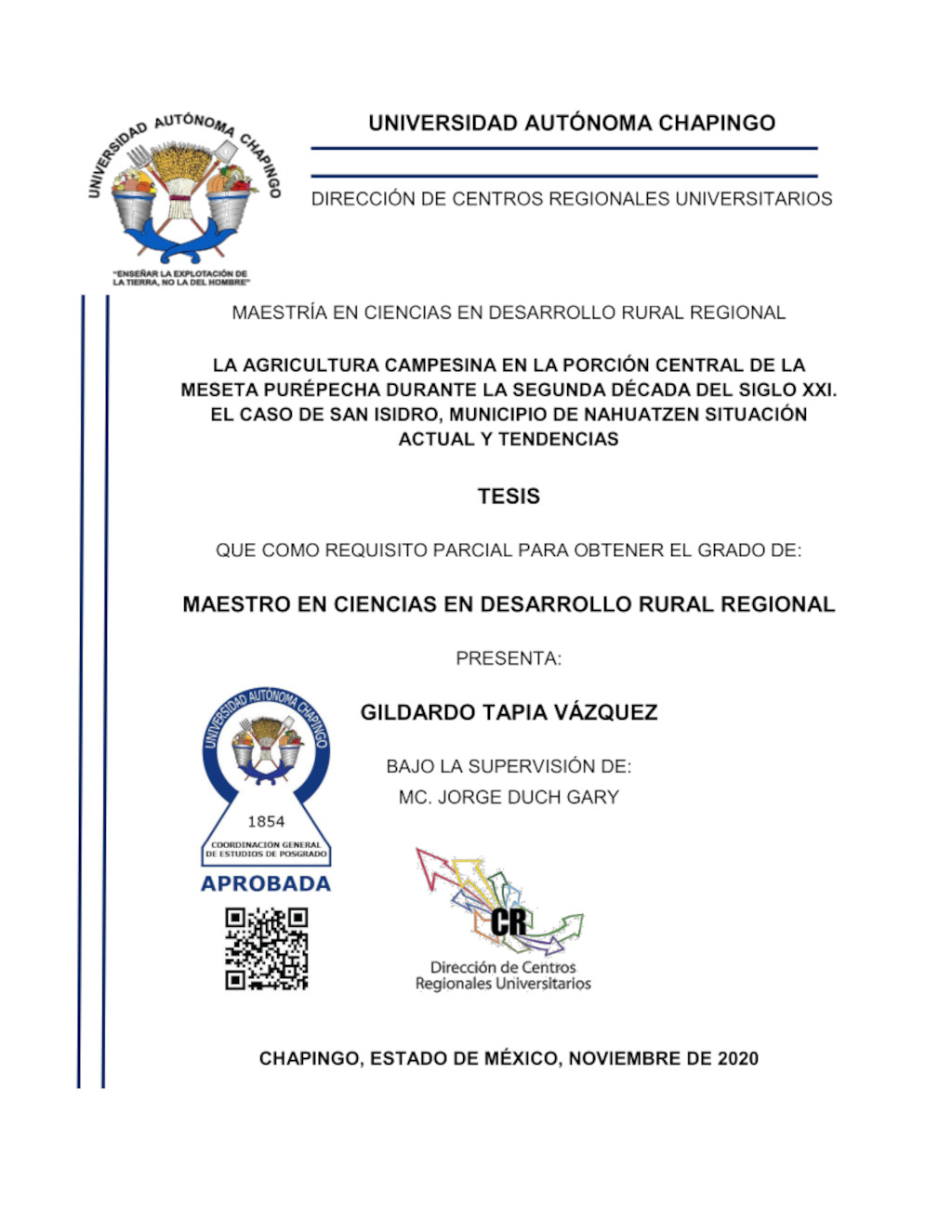 Tesis (Maestría en Ciencias en Desarrollo Rural Regional)