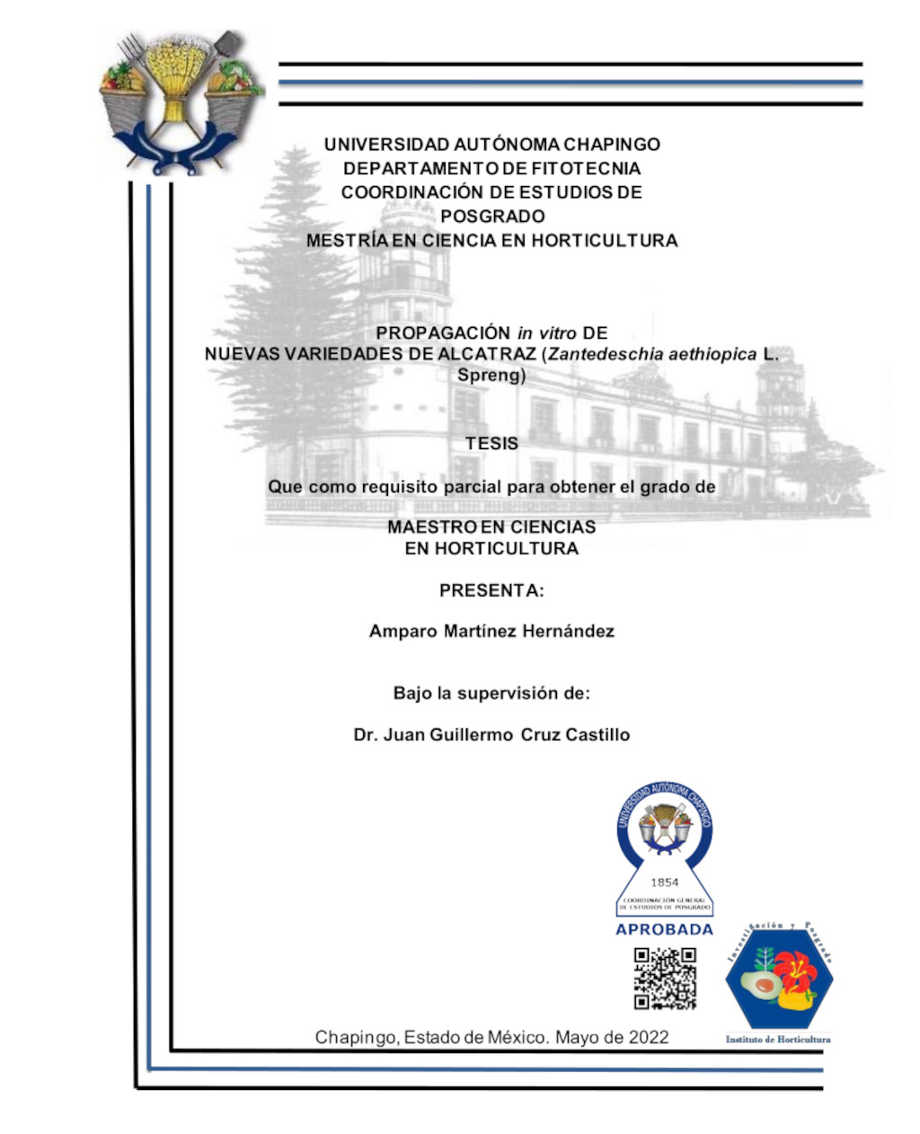 Tesis (Maestría en Ciencias en Horticultura)