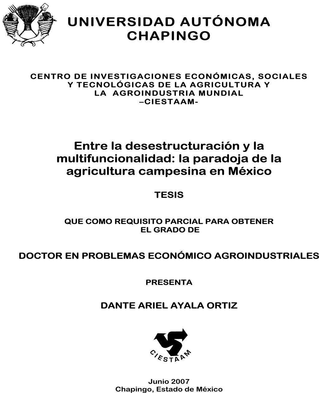 Desde hace dos décadas y media el campo mexicano ha experimentado profundas reformas estructurales tendientes a su transformación en nombre de la modernización, la eficiencia y la libre competencia. Durante este tiempo el sector campesino, compuesto por millones de productores familiares de maíz criollo de temporal, han sido abandonados, al reducirles el apoyo gubernamental, obligándolos a encarar los desafíos del libre comercio, sin protección alguna, lo que los ha conducido al deterioro ambiental y tecnológico, la migración, el empobrecimiento generalizado de las familias y, en sí, a la pérdida del capital rural. Dos hipótesis se derivan de este contexto. La primera señala que este abandono y descapitalización rural no es el “daño colateral” de la transformación del campo, sino el objetivo primario de la política sectorial, que busca propiciar la desestructuración de la modalidad campesina (ineficiente en términos convencionales), siguiendo el principio de crisis-reestructuración del modelo neoliberal. La segunda hipótesis establece que, alternativamente, el Estado mexicano tiene la posibilidad de reorientar su política agrícola para activar las fuerzas recapitalizadoras de este sector, mediante el reconocimiento de la multifuncionalidad de la agricultura campesina y su traducción en medidas de apoyo, operadas bajo el principio de la eco-condicionalidad. En su desarrollo, la tesis consta de cinco investigaciones independientes, en cada una de las cuales se proponen y prueban hipótesis particulares, que en conjunto contribuyen a demostrar las dos hipótesis generales ya señaladas. La tesis concluye que de lograr el consenso y la voluntad política necesaria, el Estado mexicano tiene el espacio propicio y los medios requeridos para propiciar el efectivo desarrollo rural sustentable. Con este propósito, finalmente se sugieren algunas líneas generales de políticas públicas.