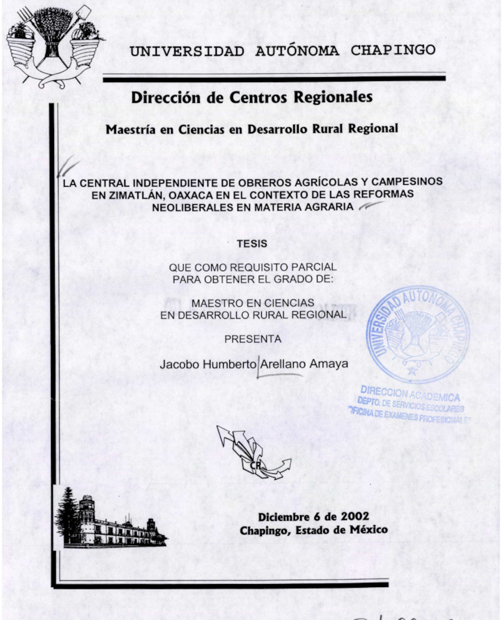 La central independiente de obreros agrícolas y campesinos en Zimatlán, Oaxaca en el contexto de las reformas neoliberales en materia agraria