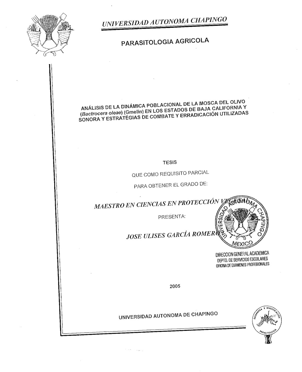 Análisis de la dinámica poblacional de la mosca del olivo (Bactrocera olecte) (Gmelin) en los Estados de Baja California y Sonora y estrategias de combate y erradicación utilizadas