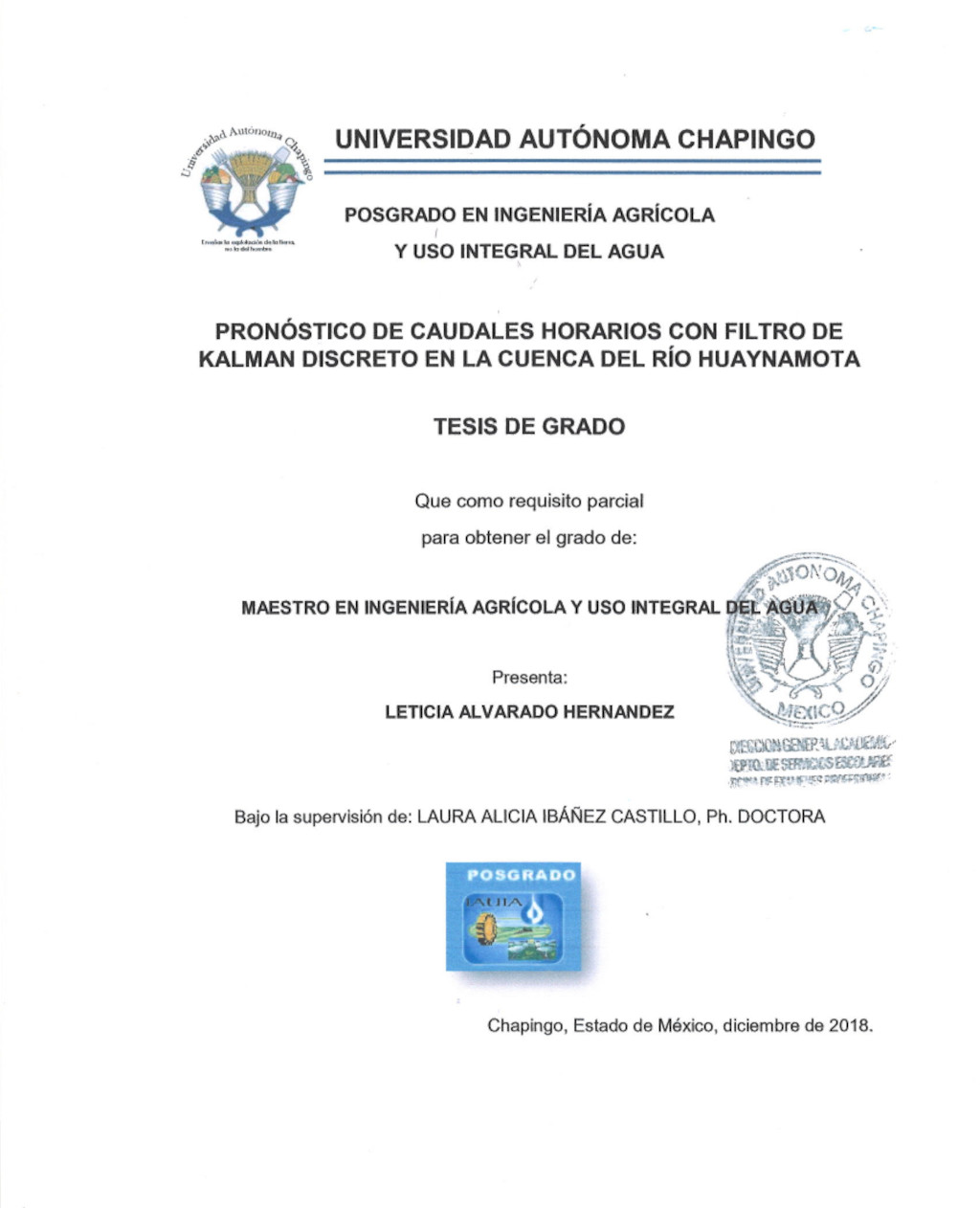 Tesis (Maestría en Ingeniería Agrícola y Uso Integral del Agua)
