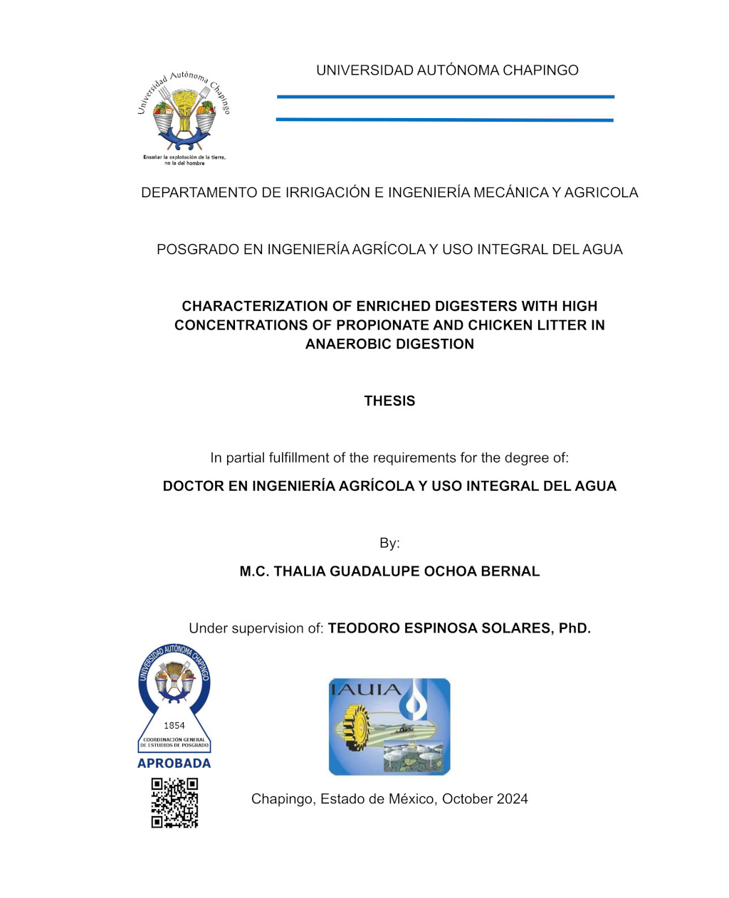 Tesis (Doctorado en Ingeniería Agrícola y Uso Integral del Agua)