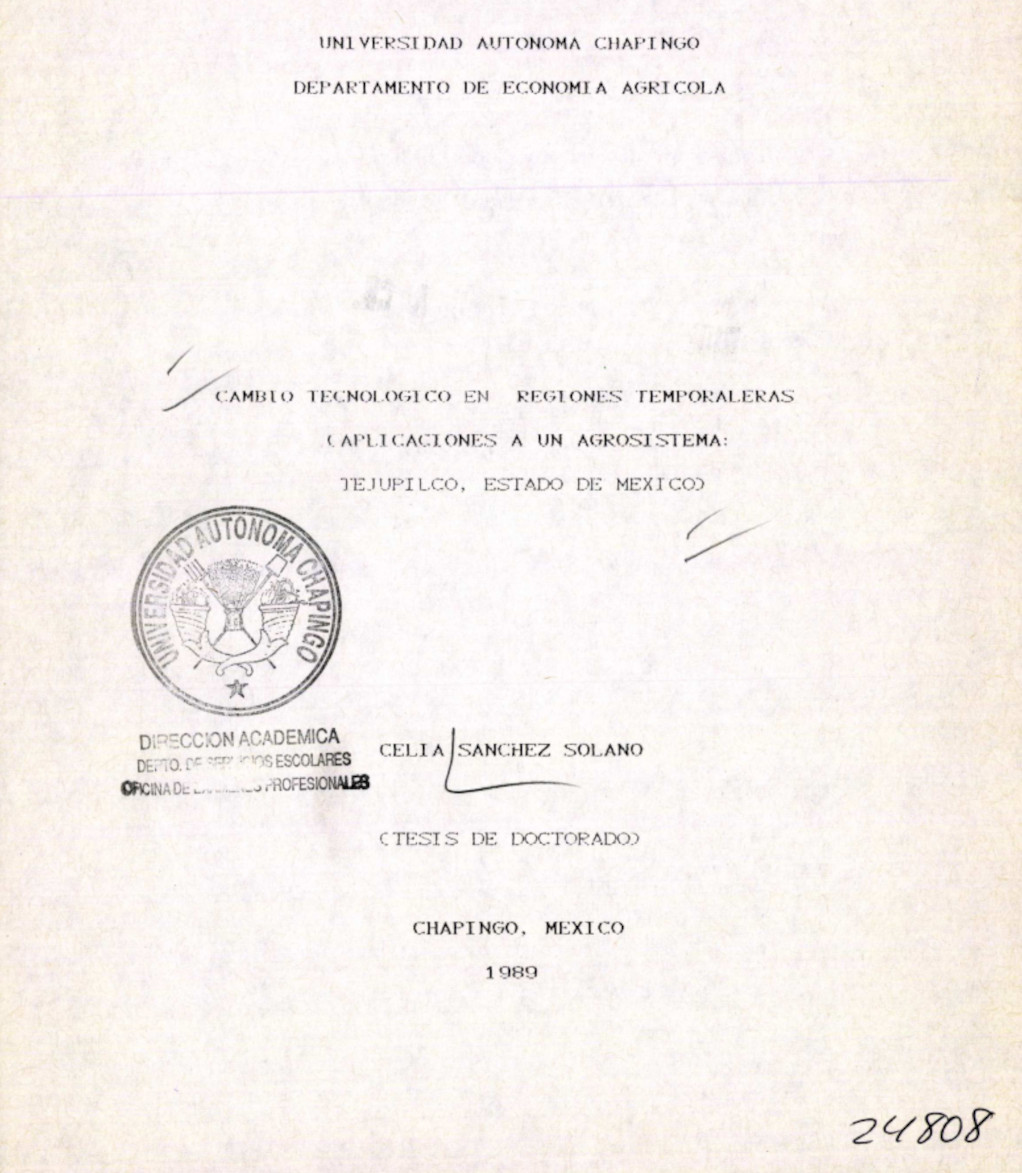 Cambio tecnológico en regiones temporaleras (aplicaciones a un agrosistema: Tejupilco, Estado de México)