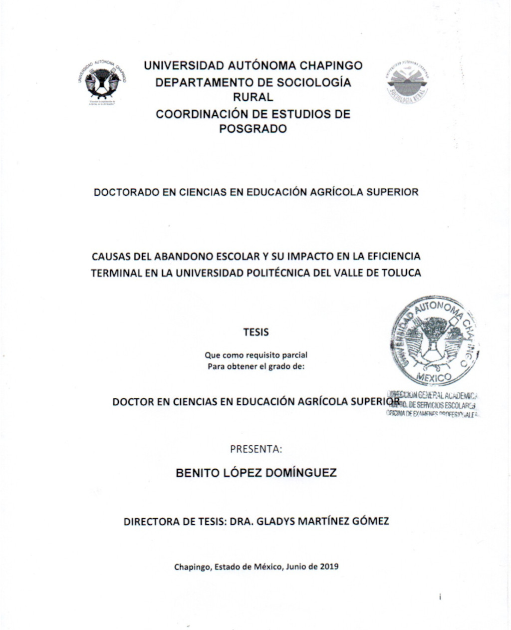 Tesis (Doctorado en Ciencias en Educación Agrícola Superior)