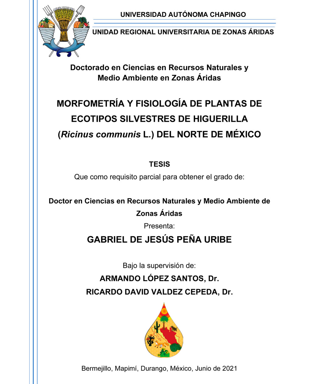 Tesis (Doctor en Ciencias en Recursos Naturales y Medio Ambiente en Zonas Áridas)