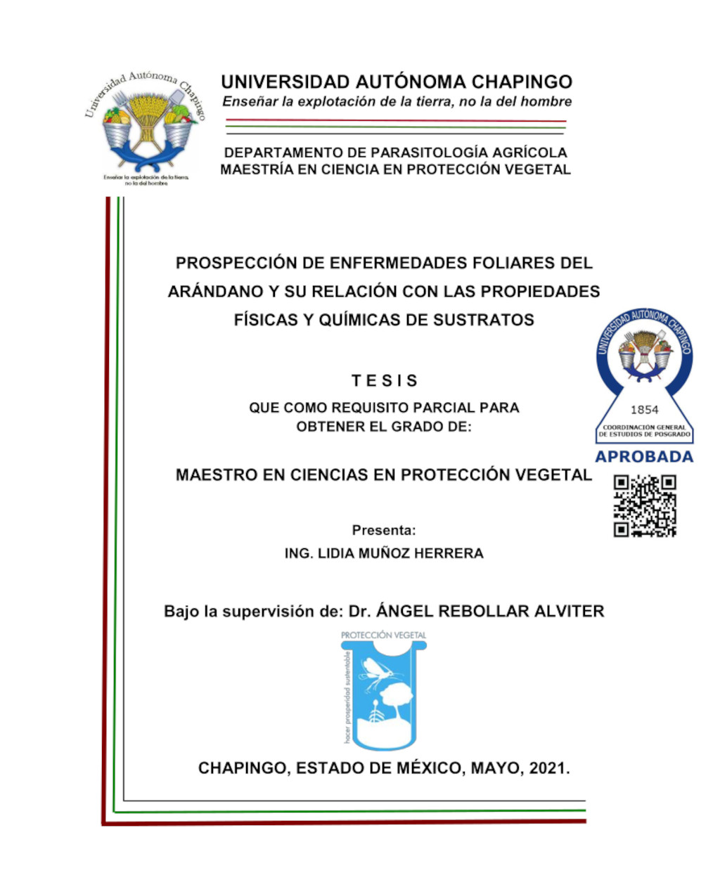 Prospección de enfermedades foliares del arándano y su relación con las propiedades físicas y químicas de sustratos