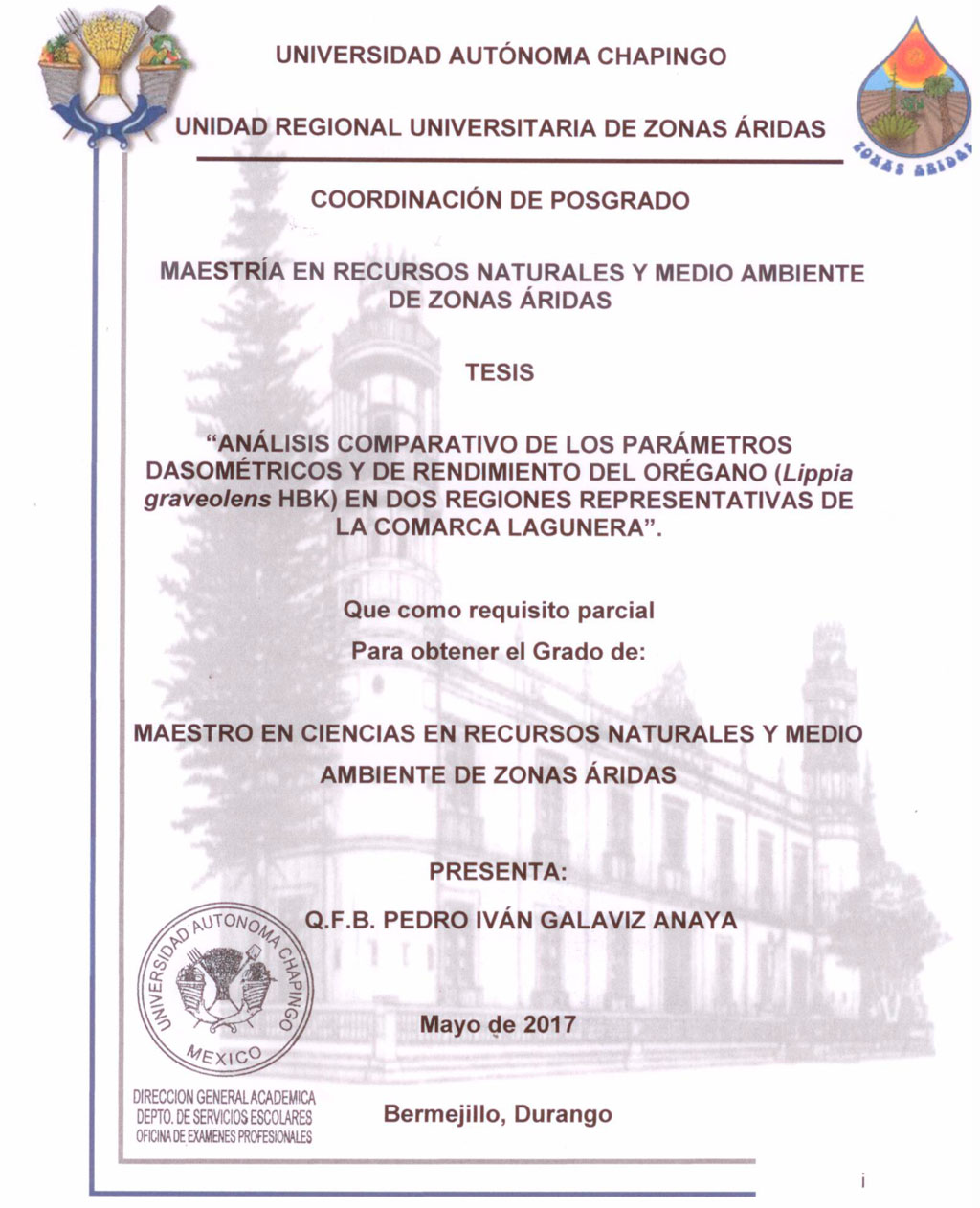 Análisis comparativo de los parámetros dasométricos y de rendimiento del orégano (Lippia graveolens HBK) en dos regiones representativas de la Comarca Lagunera.