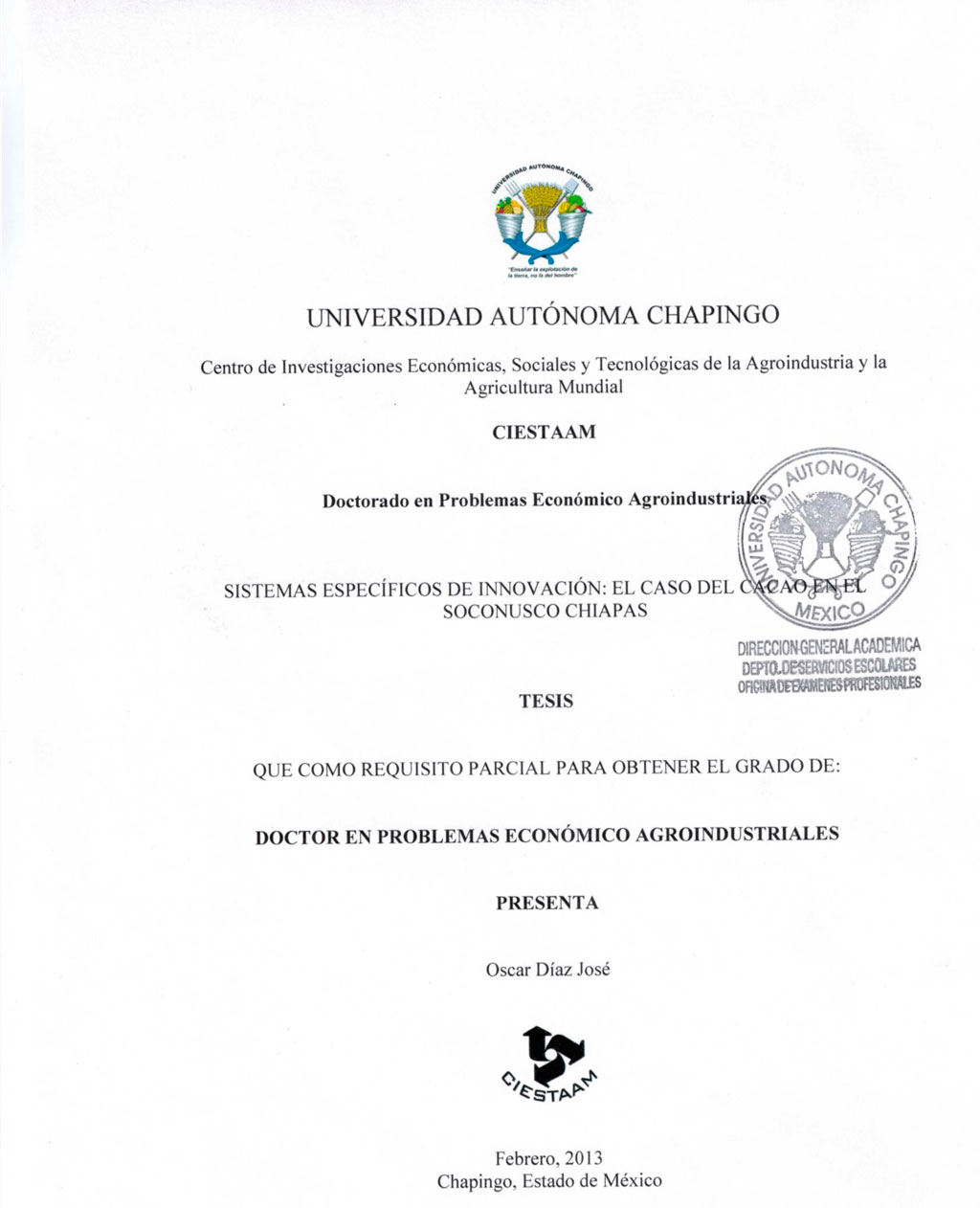 Tesis (Doctorado en Problemas Económico Agroindustriales)