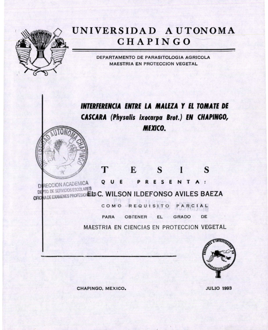 Interferencia entre la maleza y el tomate de cascara (Physalis ixocarpa Brot.) en Chapingo, México