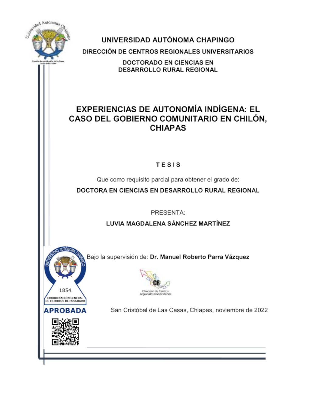 Tesis (Doctorado en Ciencias en Desarrollo Rural Regional)