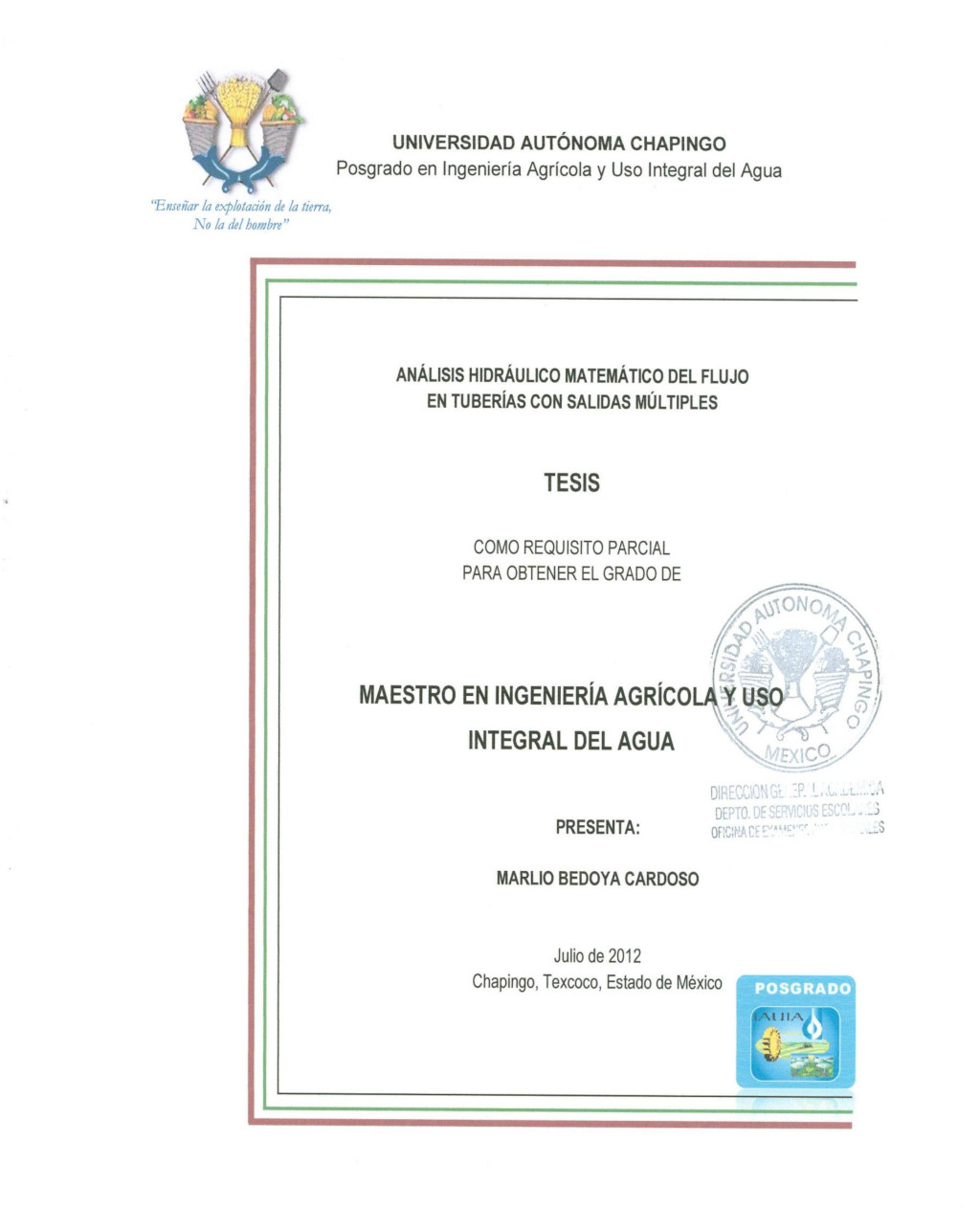 Tesis (Maestría en Ingeniería Agrícola y Uso Integral del Agua)