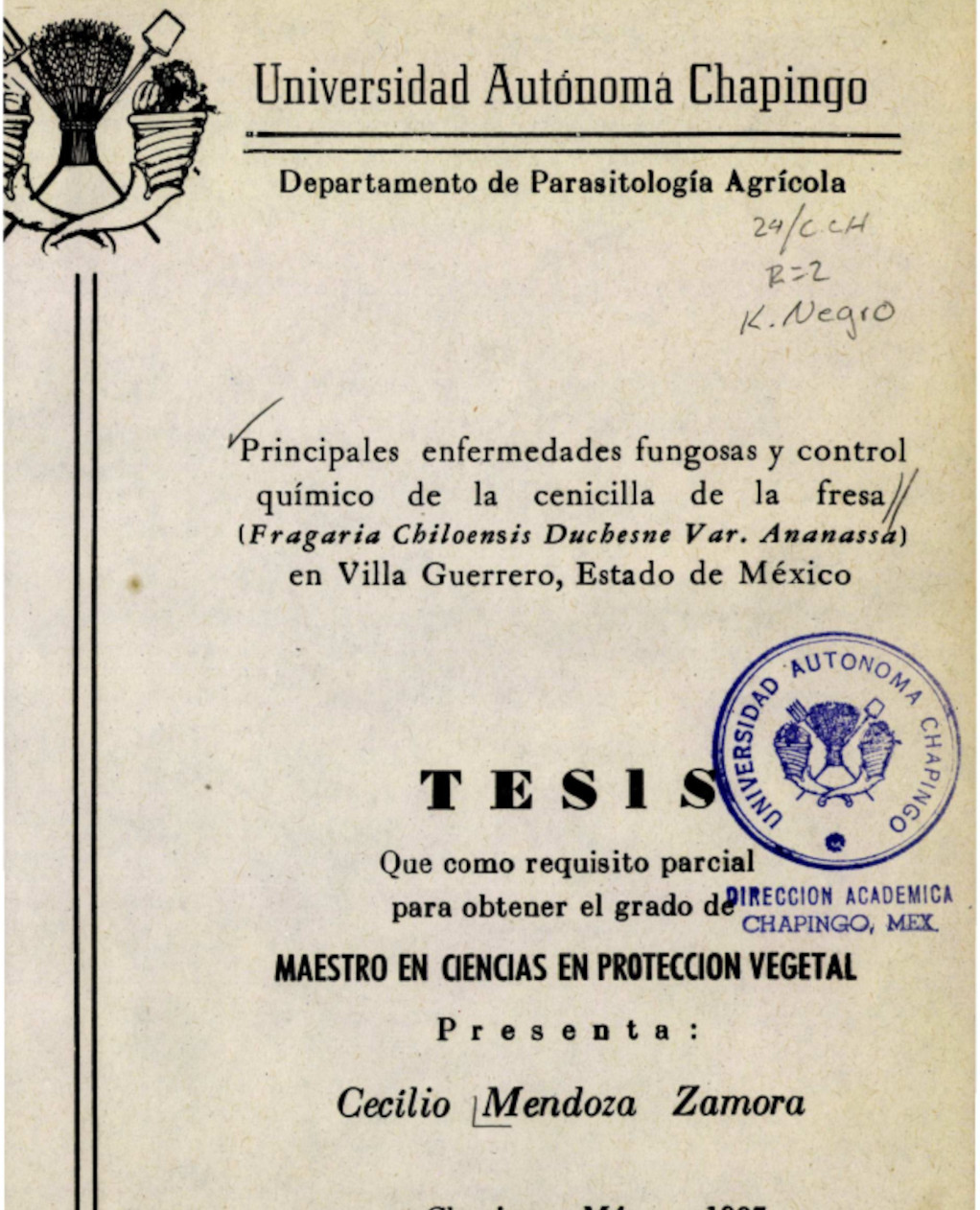 Principales enfermedades fungosas y control químico de la cenicilla de la fresa (Fragaria Chiloensis Duchesne Var. Ananassa) en Villa Guerrero, Estado de México