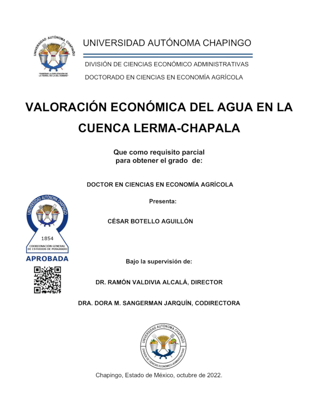 Tesis (Doctorado en Ciencias en Economía Agrícola)