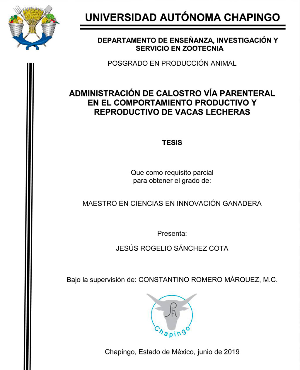 Administración de calostro vía parenteral en el comportamiento productivo y reproductivo de vacas lecheras