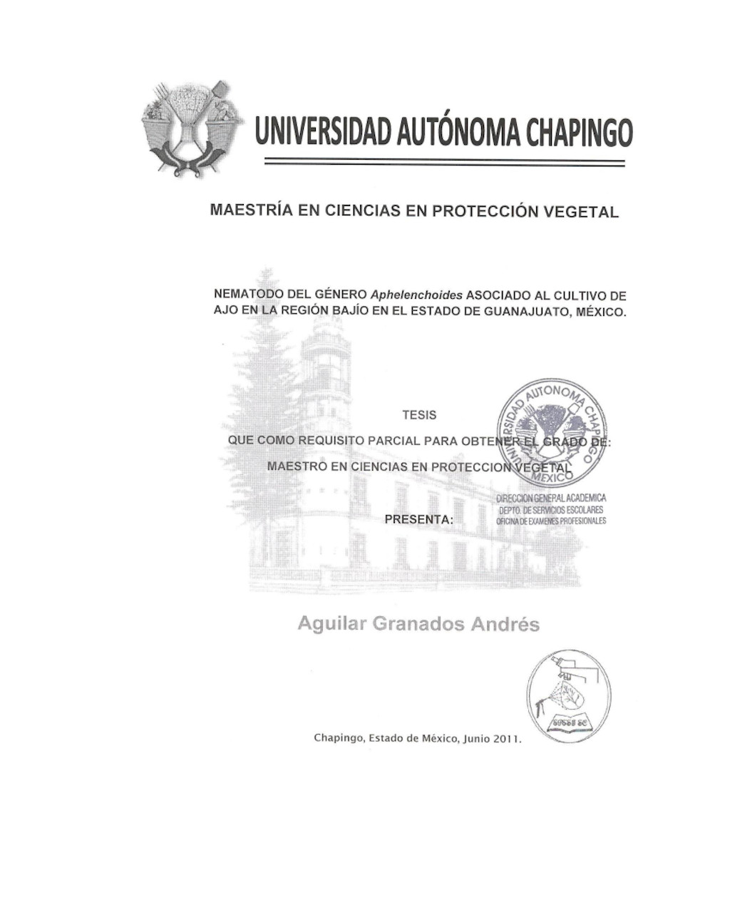 Tesis (Maestría en Ciencias en Protección Vegetal)