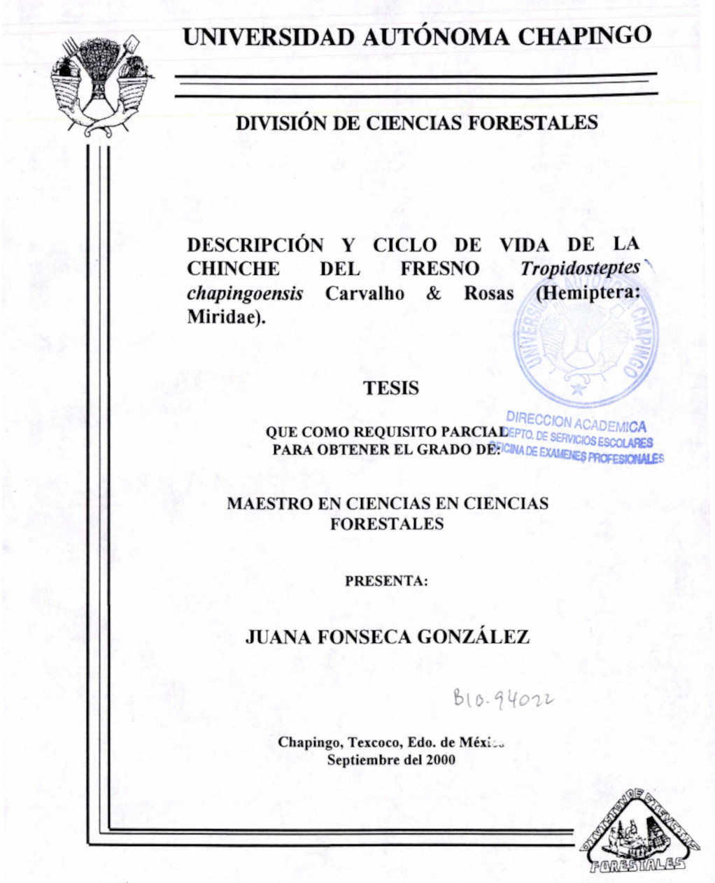 Descripción y ciclo de vida de Ia chinche del fresno Tropidosteptes chapingoensis Carvalho & Rosas (Hemiptera: Miridae)