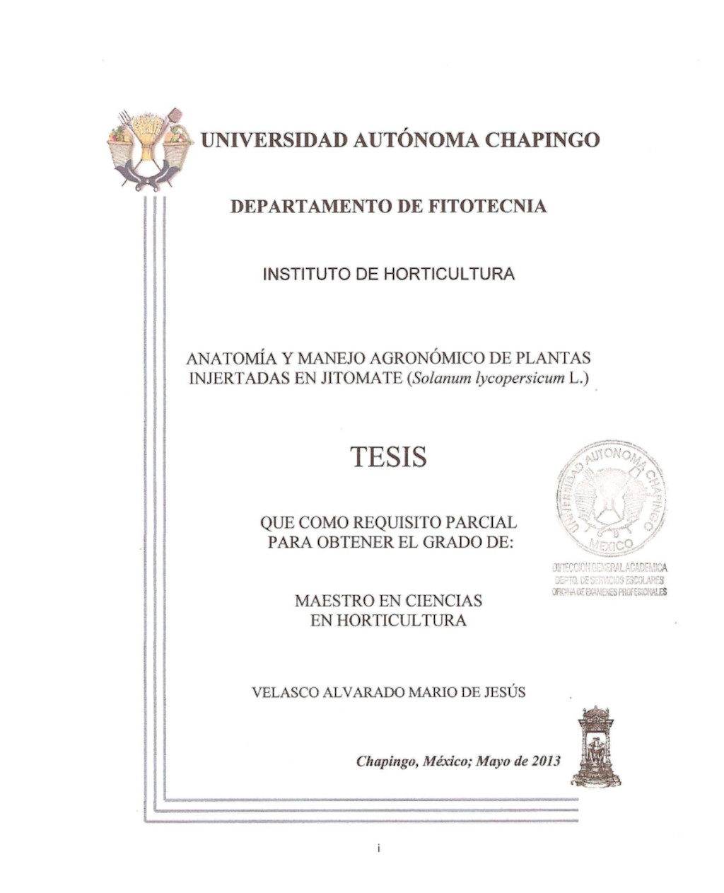 Anatomía y manejo agronómico de plantas injertadas en jitomate (Solanum lycopericum)