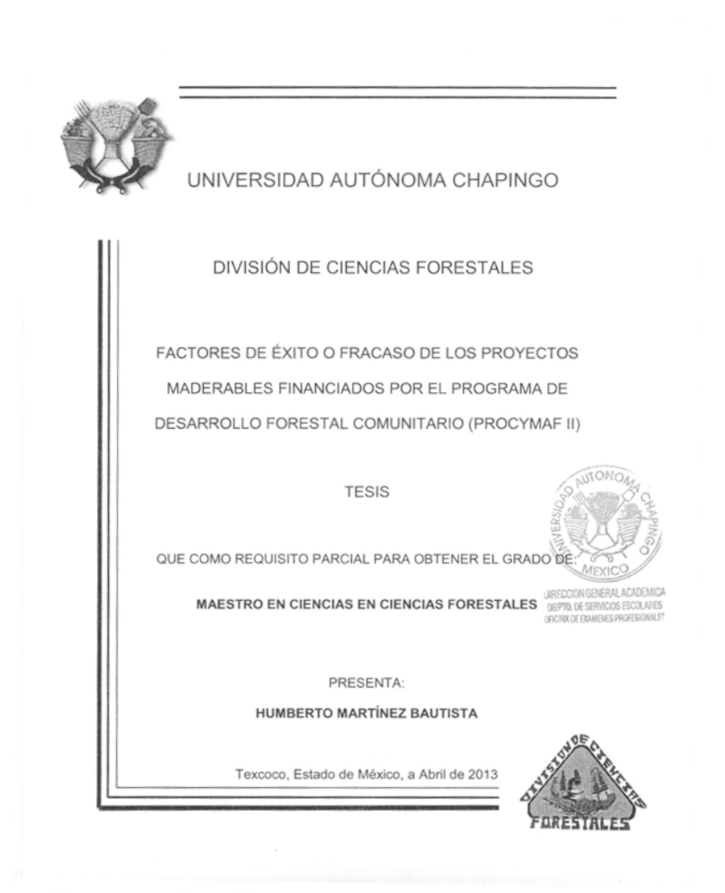 Factores de éxito o fracaso de los proyectos maderables financiados por el Programa de Desarrollo Forestal Comunitario (PROCyMAF II)