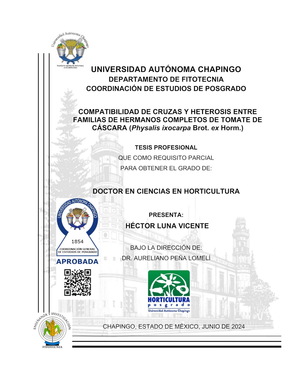 heterosis para la generación de variedades híbridas. Dicho trabajo está integrado