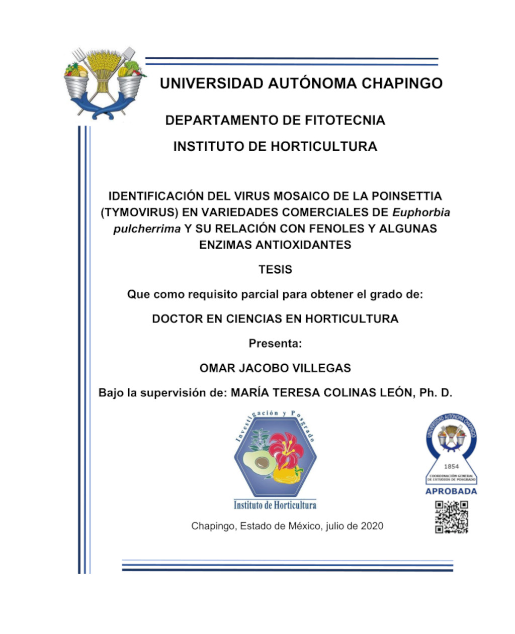 identificar la presencia del Virus Mosaico de la Poinsettia en 20 variedades