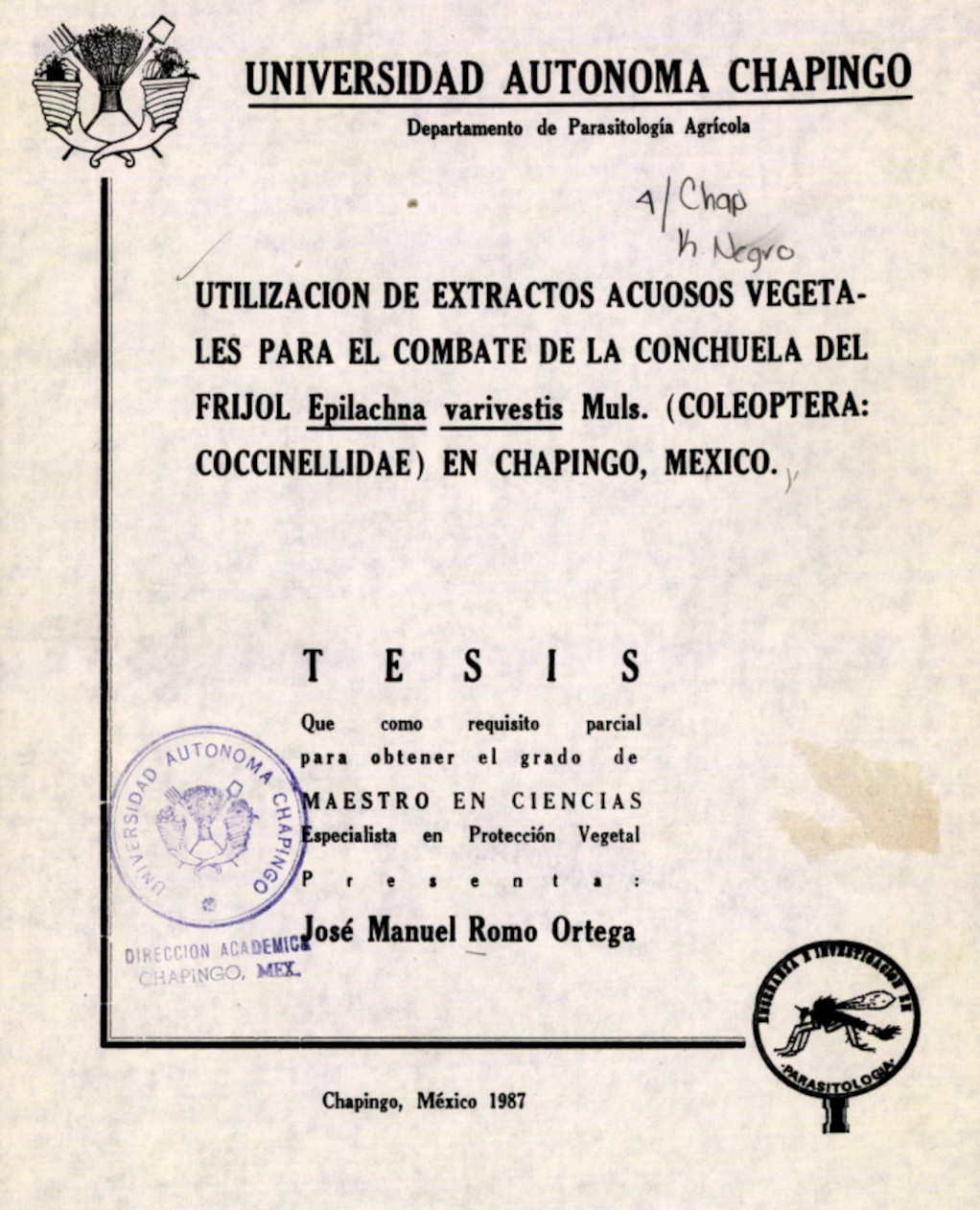 Utilización de extractos acuosos vegetales para el combate de la conchuela del frijol Epilachna varivestis Muls. (Coleoptera: Coccinellidae) en Chapingo, México