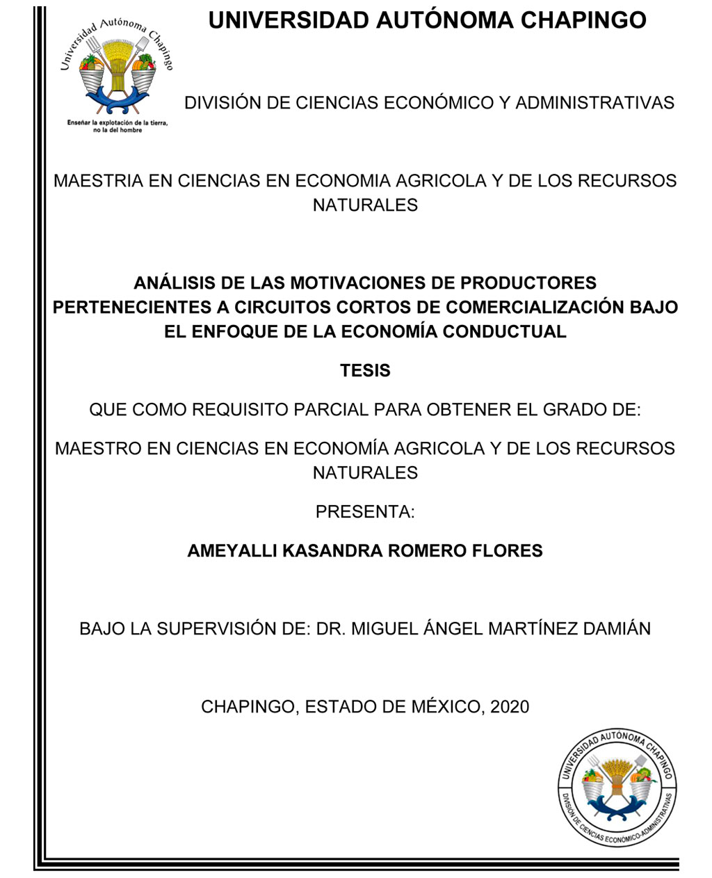 Tesis (Maestría de Ciencias en Economía Agrícola y de los Recursos Naturales)
