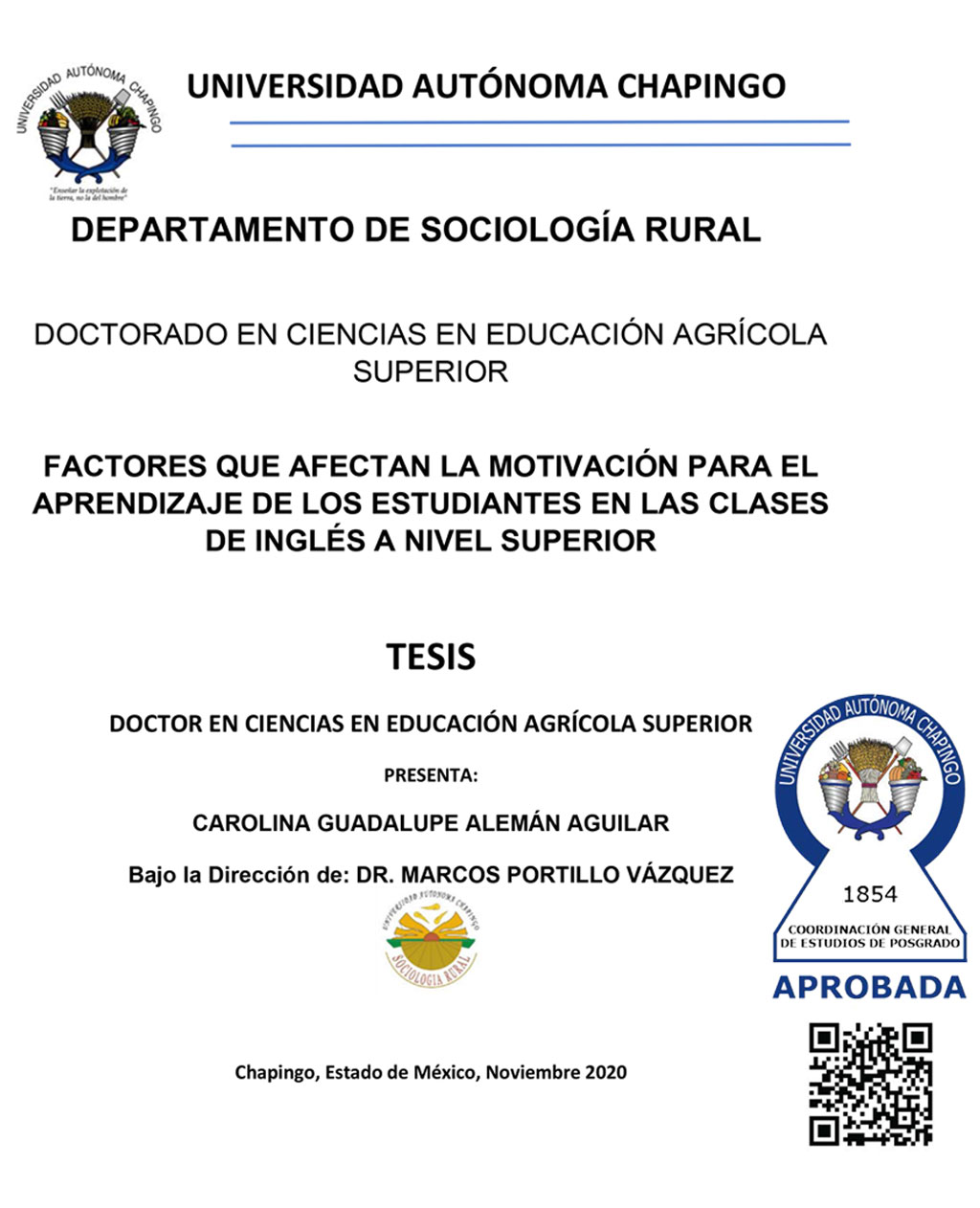 Tesis (Doctorado en Ciencias en Educación Agrícola Superior)