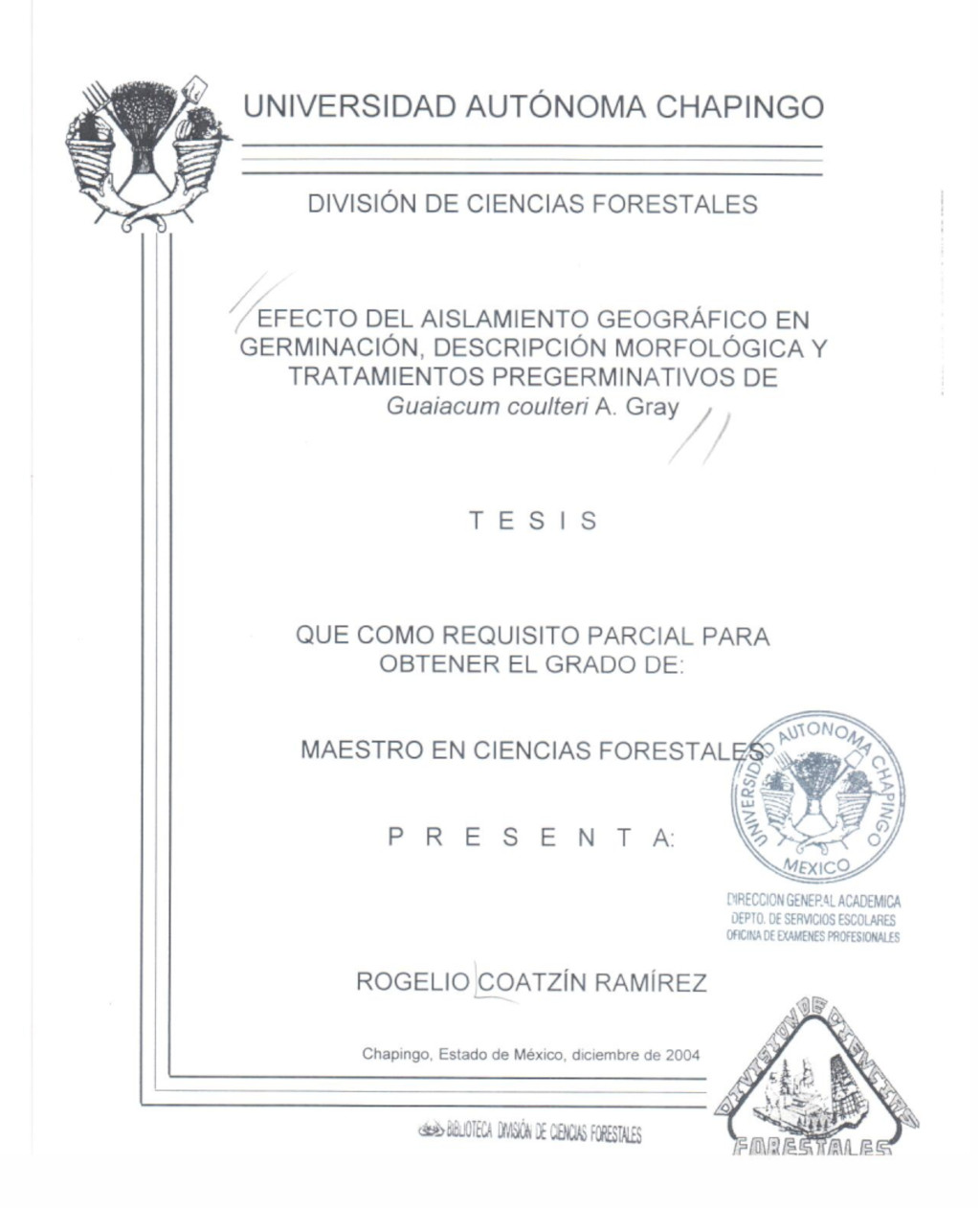 Efecto del aislamiento geográfico en germinación, descripción morfológica y tratamientos pregerminativos de Guaiacum coulteri A. Gray