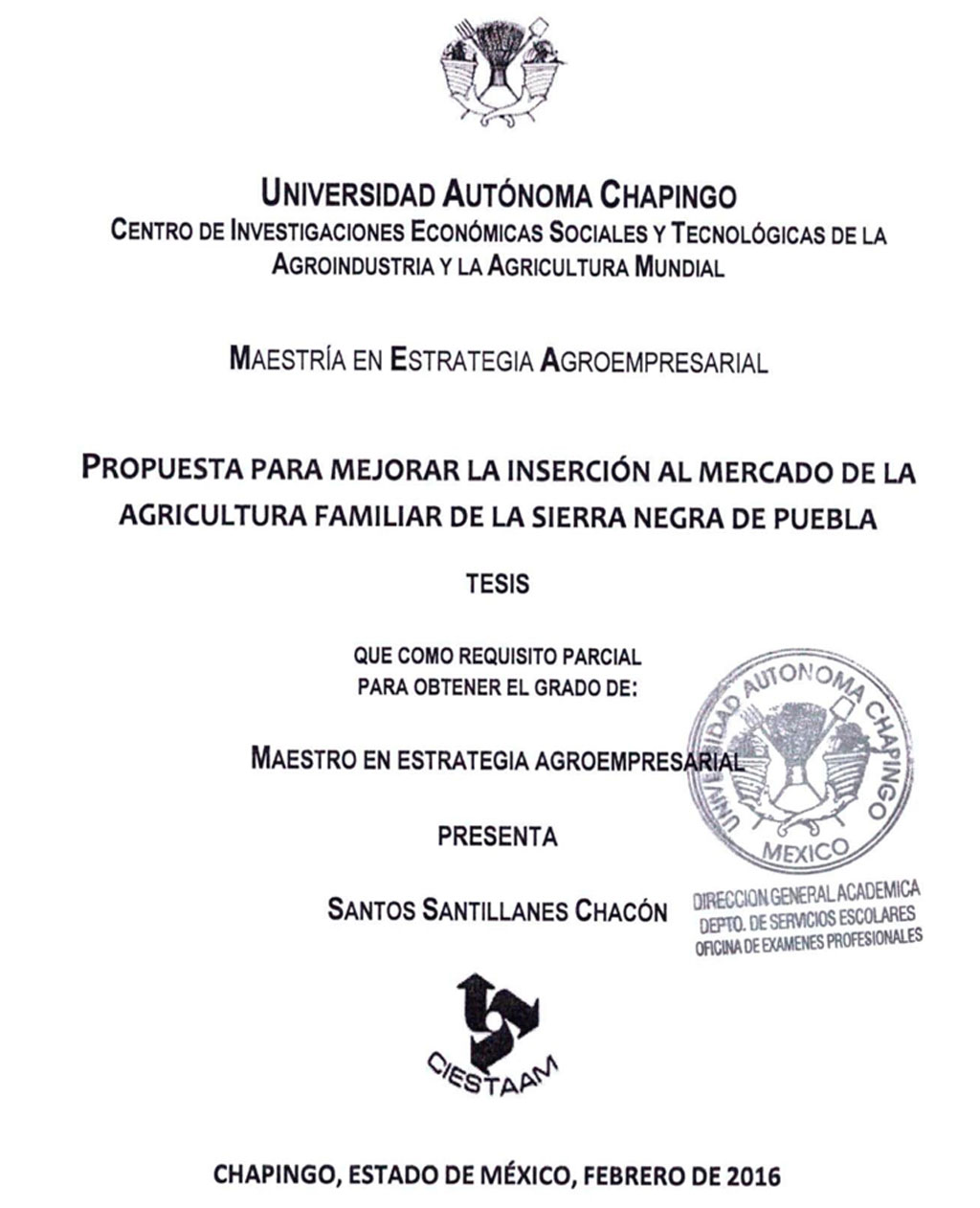Tesis (Maestría en Estrategia Agroempresarial)