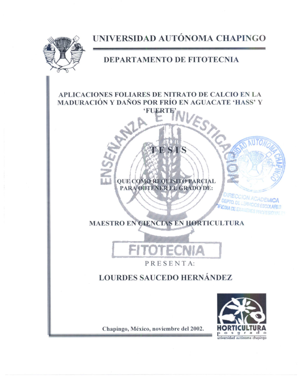 Tesis (Maestría en Ciencias en Horticultura)