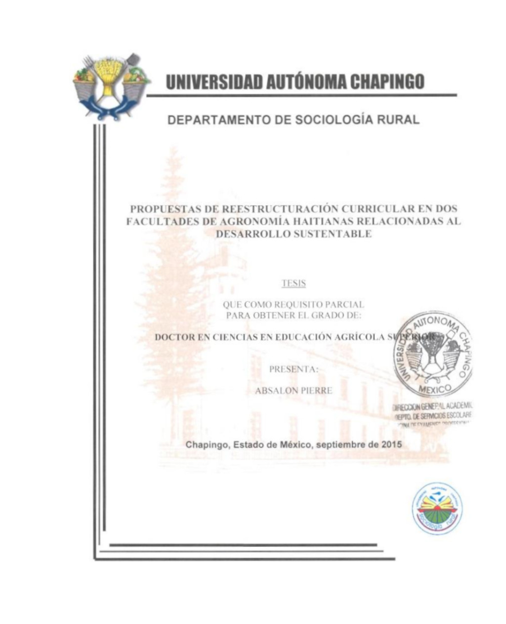 Propuestas de reestructuración curricular de dos facultades de agronomía haitianas relacionadas al desarrollo sustentable
